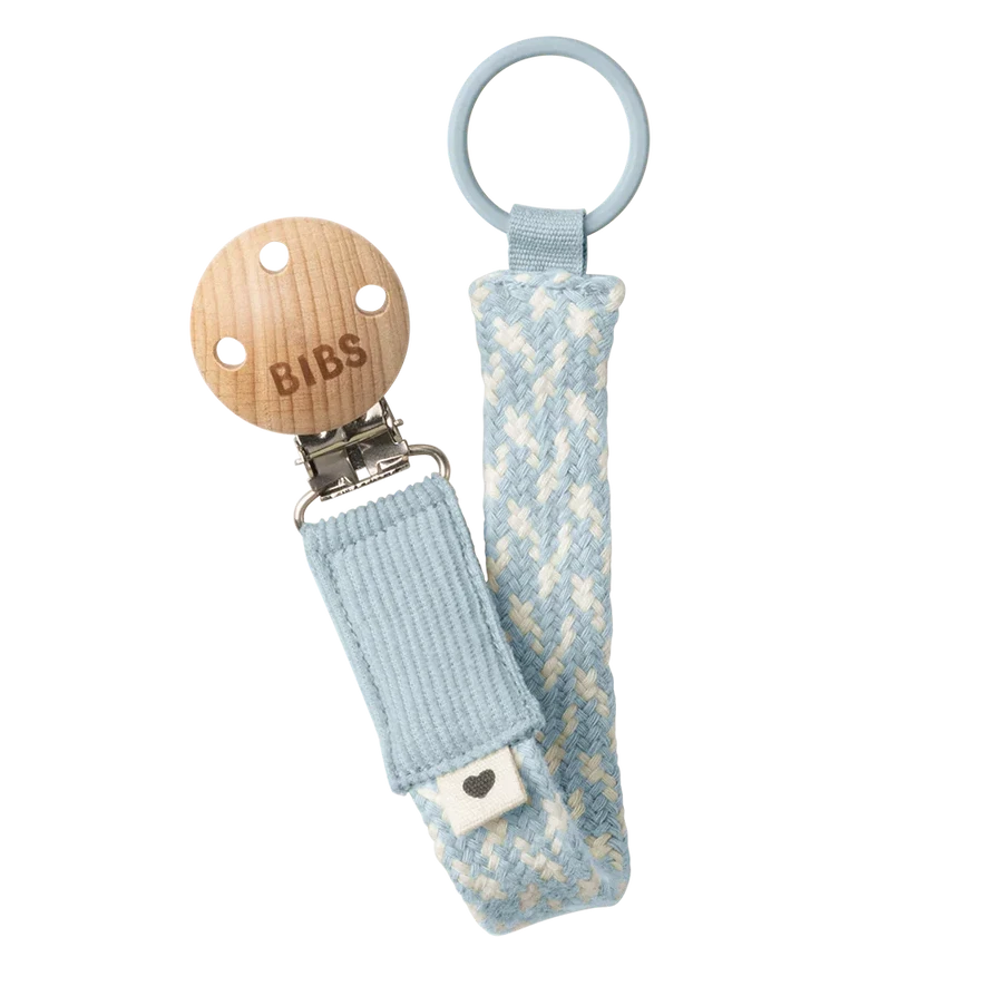 BIBS’ pacifier clip makes everyday life with a baby a bit easier. Our pacifier clips are easy to use – just attach the metal clip to a piece of your child’s clothing and it prevents the pacifier from getting lost, or dirty by falling to the ground or floor. A practical product to be used both at home, in the stroller, or out and about.