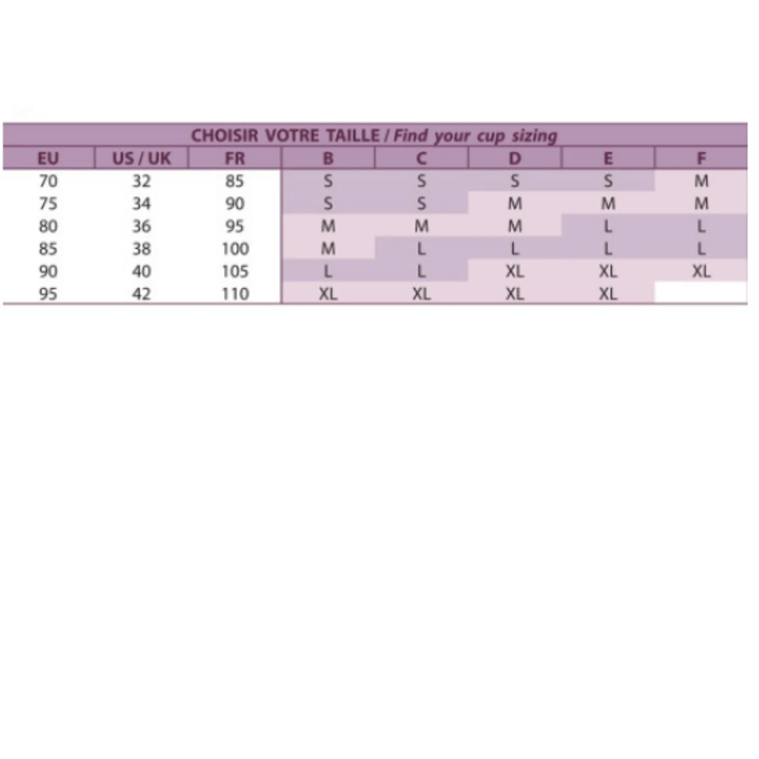 | Specifications | 4 hooking positions, Brassière shape, Extra-soft microfiber, Seamless, Soft bra |