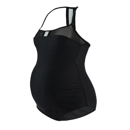 Its wide band in the back and on the breast maximizes the sports spriti of the one piece swimsuit. The top of the swimsuit is covered with a hairnet band to offer a gorgeous decolleté to moms-to-be.