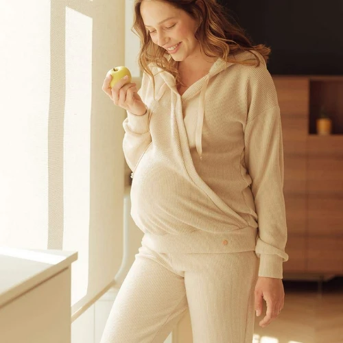 The Sweet Home maternity trousers are perfect for relaxing at home. We love them for their wide waistband, their comfort and their 100% French comfort fabric. The Sweet Home collection is designed to offer you a cocooning pregnancy and a soft breastfeeding.