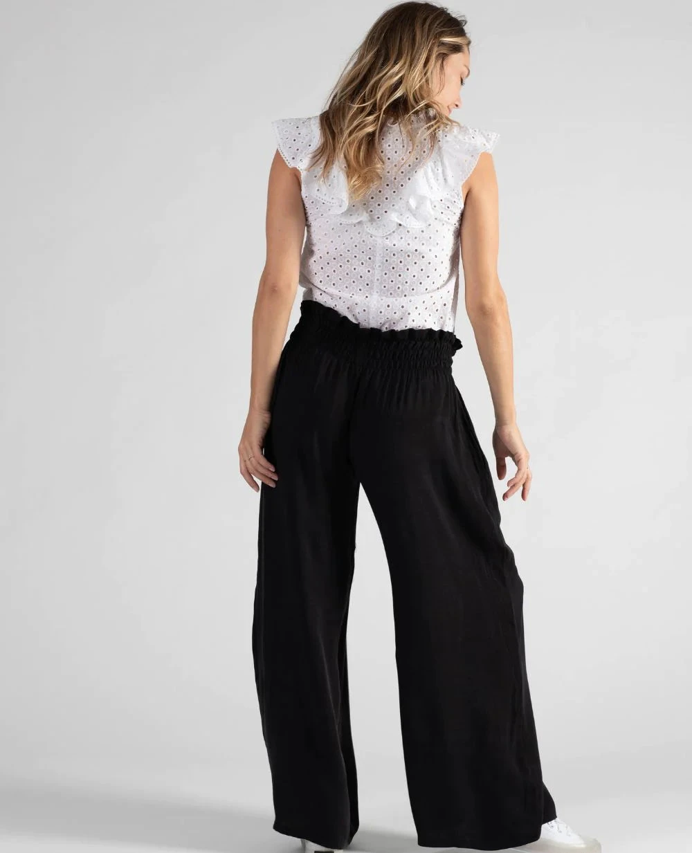 The black Sahel maternity pants combine fluidity and comfort with their twill fabric and smocked elasticated waistband.