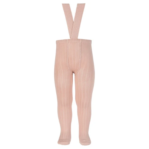 Rib tights with elastic suspenders in Old Rose colour