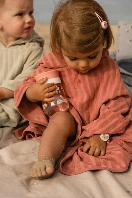 Are you done swimming? Slip into this wonderfully soft hooded beach poncho to warm up. You will be dry in a jiffy so you can get back to playing on the beach. This poncho is the ultimate beach towel to bring along for a day of water fun. Prevent any shivers and offer the terry jacquard poncho as soon as your little one comes out of the water. To dry off or to provide warmth and comfort when it’s time for a nap. The beach poncho is one-size, incredibly soft and available in 3 colours. Pair up with the matching mom bag and bring some of your little one’s favourite beach items such as the Ice Cream and Cupcakes playset. Have a wonderful day at the beach