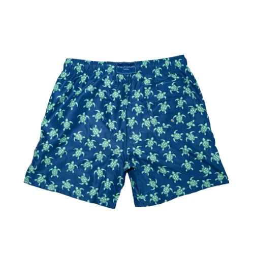 Luxury boy’s swimwear, the Navy Bold Green Turtlee is a summer essential.