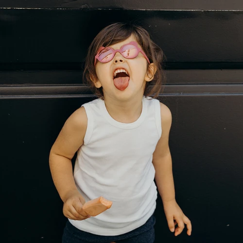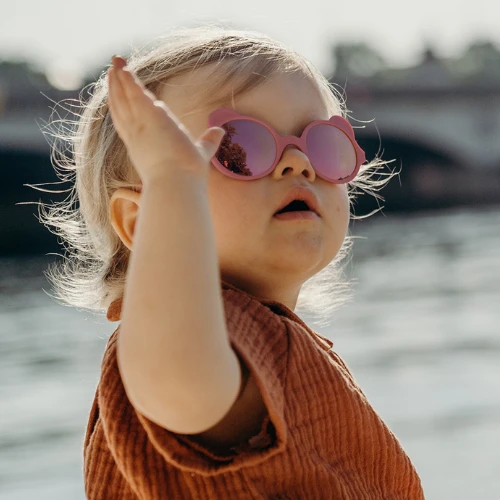 This teddy-shaped model will be a big hit with every parent! This pair of UNBREAKABLE glasses, MADE IN FRANCE and featuring a nose and little ears on the frame, is irresistible. The category-3 golden mirror lenses offer amazing style for an ultra-on-trend look combined with great protection because they filter out 100% of UV light. The peach pink or cream frame will turn your kids into little starlets this summer!ULTRA-FLEXIBLE