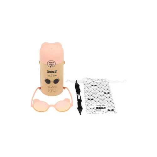 This teddy-shaped model will be a big hit with every parent! This pair of UNBREAKABLE glasses, MADE IN FRANCE and featuring a nose and little ears on the frame, is irresistible. The category-3 golden mirror lenses offer amazing style for an ultra-on-trend look combined with great protection because they filter out 100% of UV light. The peach pink or cream frame will turn your kids into little starlets this summer!ULTRA-FLEXIBLE