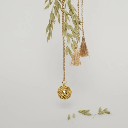 In the Mayan culture, it was worn by expectant mothers to keep them safe during pregnancy. Afterwards, it was used to calm the newborn baby with its soothing chime.