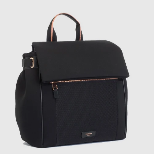 Clean lines and technical scuba combine to make the St James the most desirable convertible changing bag to date. Sports luxe styling does not compromise versatility, the interchangeable silhouette means you can convert from backpack to shoulder bag seamlessly.